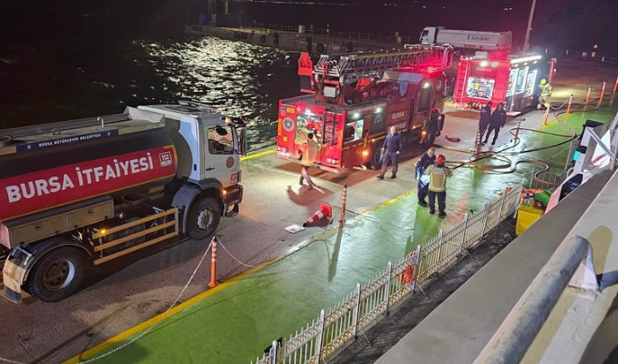 Bursa Büyükşehir Belediyesinden yapılan açıklamada, saat 19.50’de, geminin makinelerinden birinde yaşanan teknik zorlanma sonucu makine dairesinde küçük çaplı bir yangın meydana geldiği belirtildi.