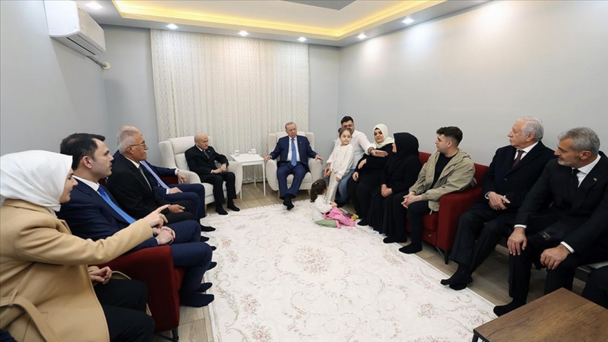 Karakuş ailesinin fertleriyle bir süre sohbet eden Cumhurbaşkanı Erdoğan, aileyle hatıra fotoğrafı çektirdi.